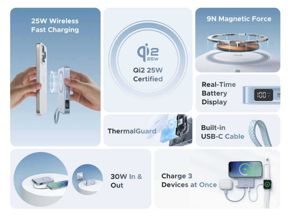 ![[3C Certified] UGREEN Qi2 25W MagFlow Magnetic Wireless Power Bank 10000mAh 30W PD Fast Charge with Built-in USB-C Cable, MagSafe Compatible for iPhone 16 15 14 Pro Max, Samsung S25 S24 Ultra](http://ugreen.com.sg/cdn/shop/files/d191aeba8d3d10a2d48f7f275dec2561.jpg?v=1775482290&width=1445)