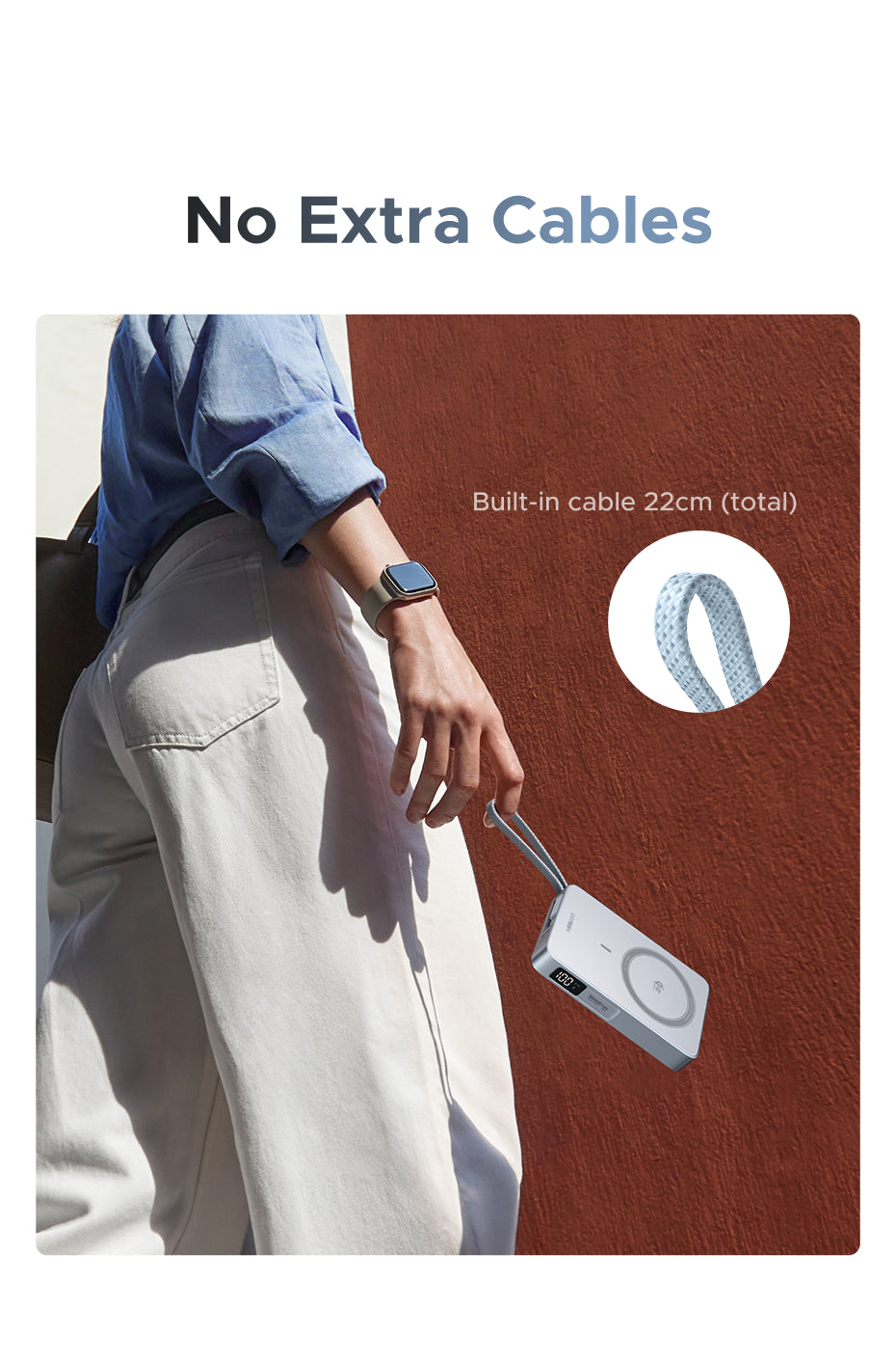 30W Bi-directional Fast Charging Not just a wireless charger! Use the integrated Heavy-Duty Braided Cable to enjoy 30W PD fast charging. You can also recharge the power bank itself at 30W, drastically reducing downtime.