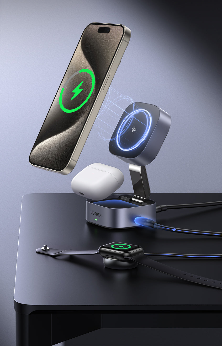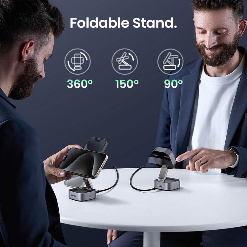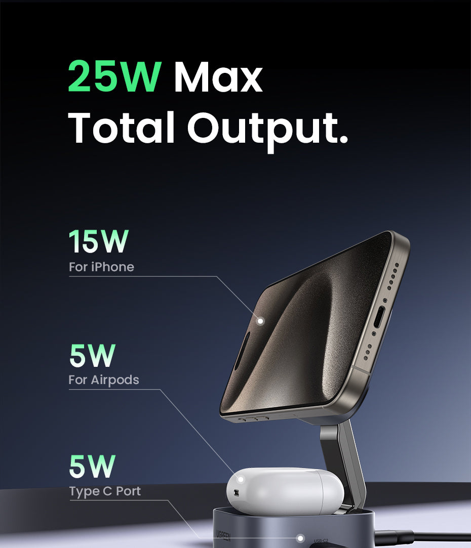 UGREEN 2-IN-1 25W MagFlow Wireless Charger for iPhone 16 15 Pro Max iPhone 16 15 Plus AirPods Pro/Max Xiaomi Samsung S25 S24 Ultra Samsung Earphone Huawei