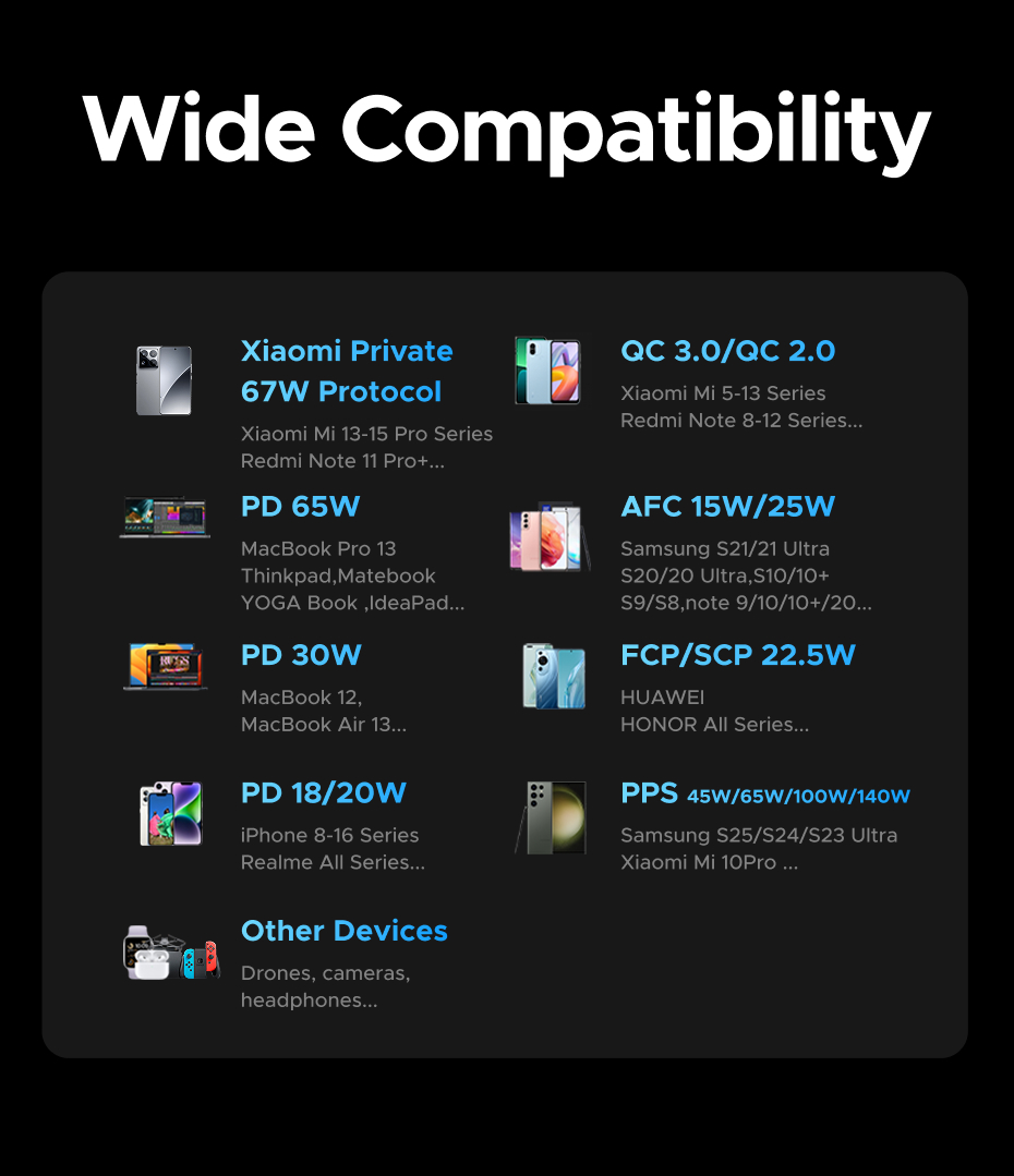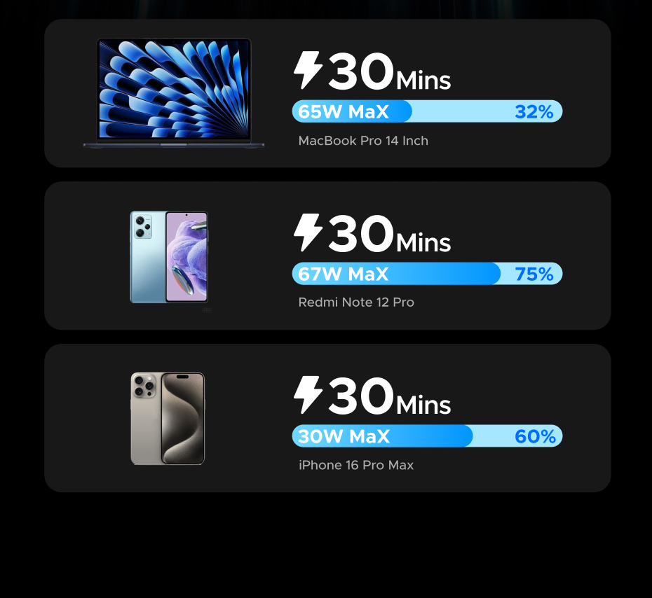 • 67W High-Power Fast Charging for Phones, Tablets & Laptops