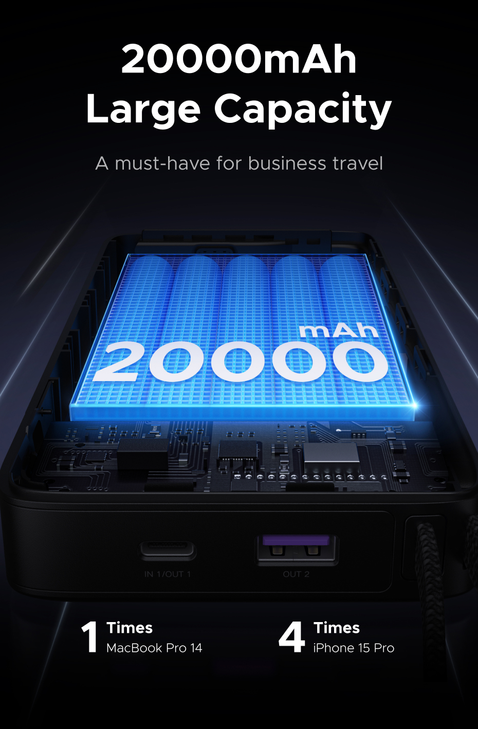 • 20000mAh Large Capacity for Extended Use