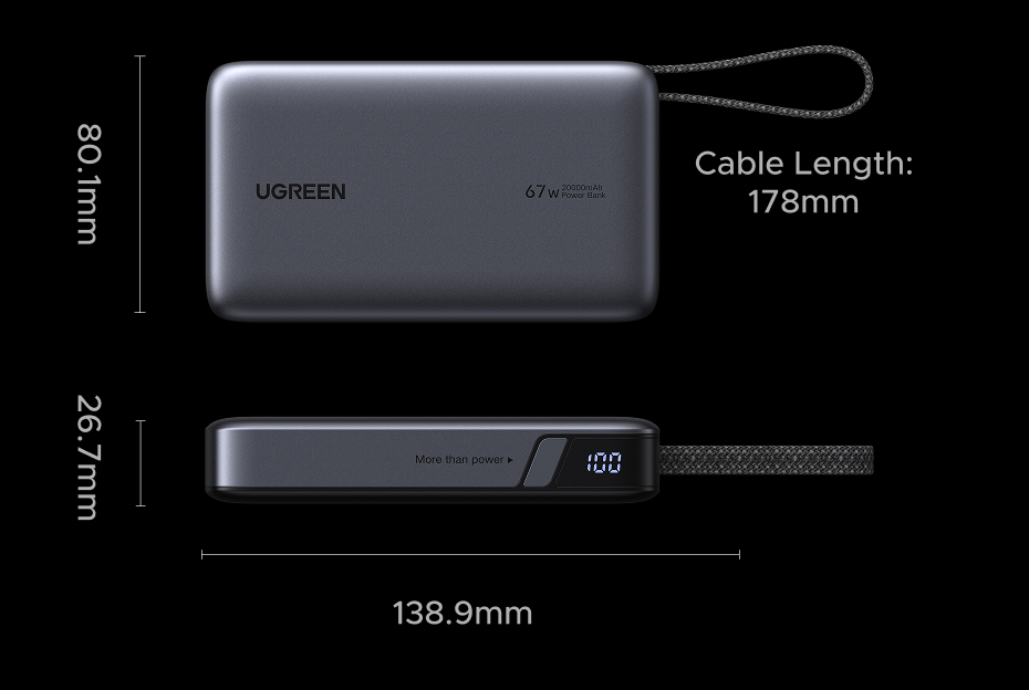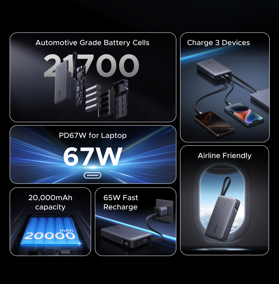 The UGREEN 20000mAh 67W Fast Charging Power Bank is designed for users who need high-power, reliable charging with certified safety and everyday convenience.
