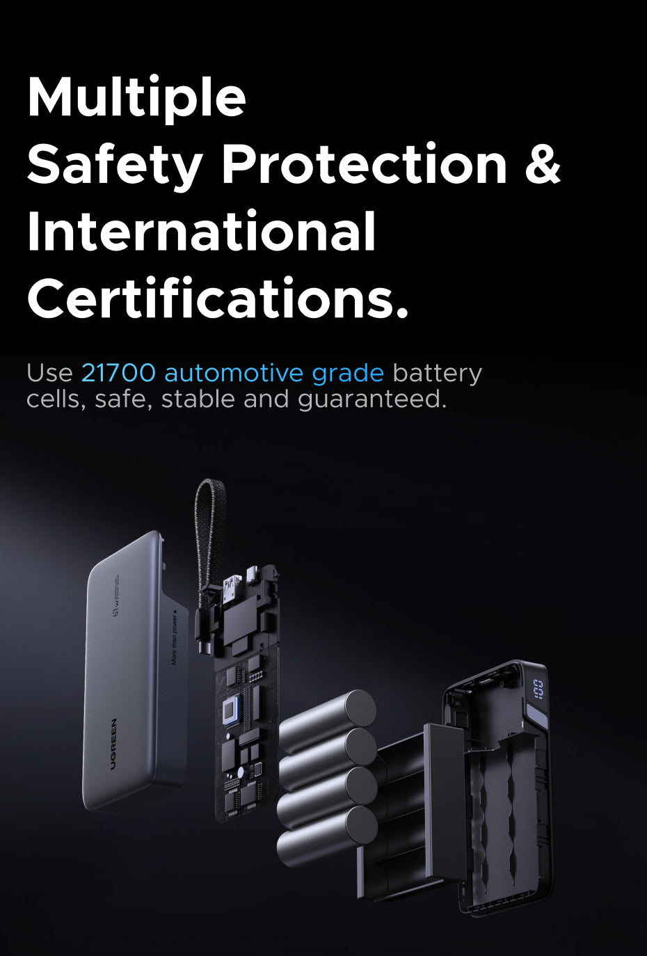 Designed with safety as a priority, the power bank features: