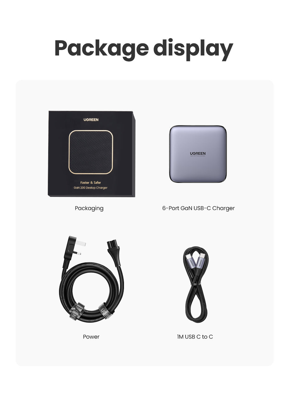 UGREEN 200W GaN 6-Port Fast Charger 4C2A 4Type-C 2USB-A Charger for Laptop Power Adapter