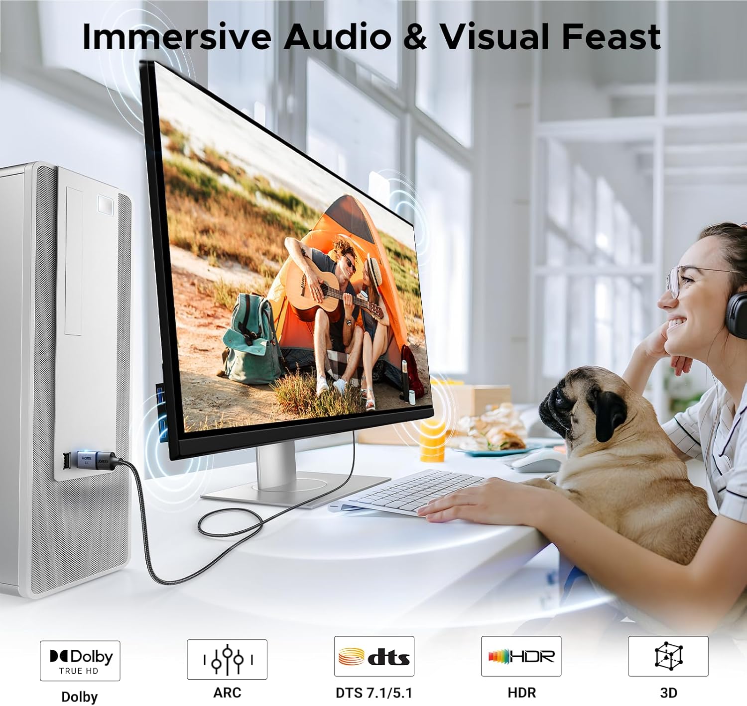Audio Video Sync: DP to HDMI cable transmits high-definition video and audio simultaneously from your computer to an HDTV for video streaming or gaming