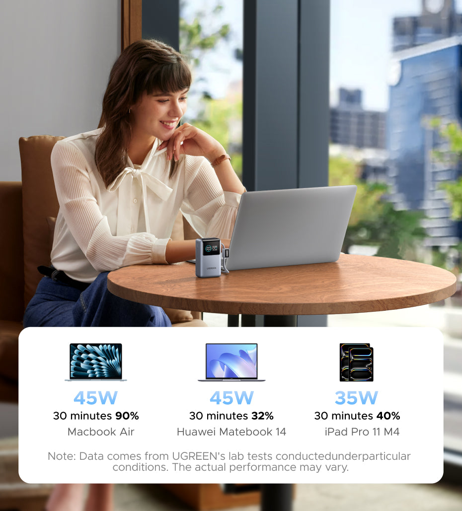 The UGREEN 55W Fast Charging Power Bank is designed for users who need laptop-level fast charging in a compact, travel-friendly form factor.