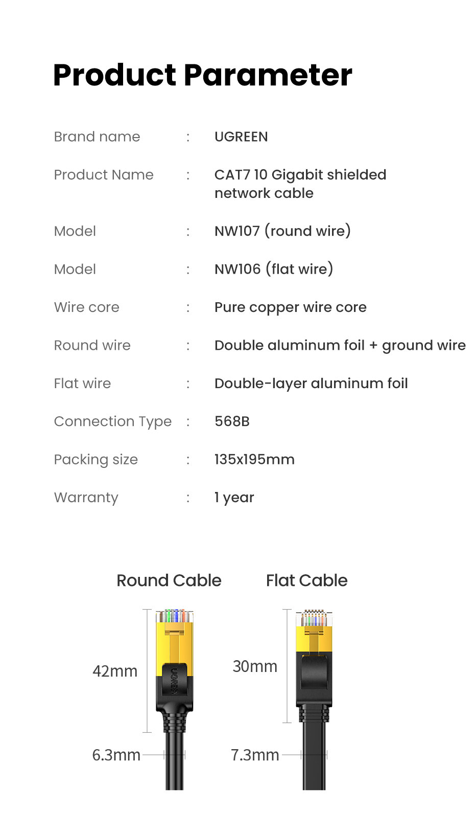 UGREEN Cat 7 Ethernet Cable Cat7 High Speed Gigabit RJ45 LAN Cable 10Gbps Network Patch Cord for Gaming PS5 PS4 PS3 Xbox PC Laptop Modem Router Computer