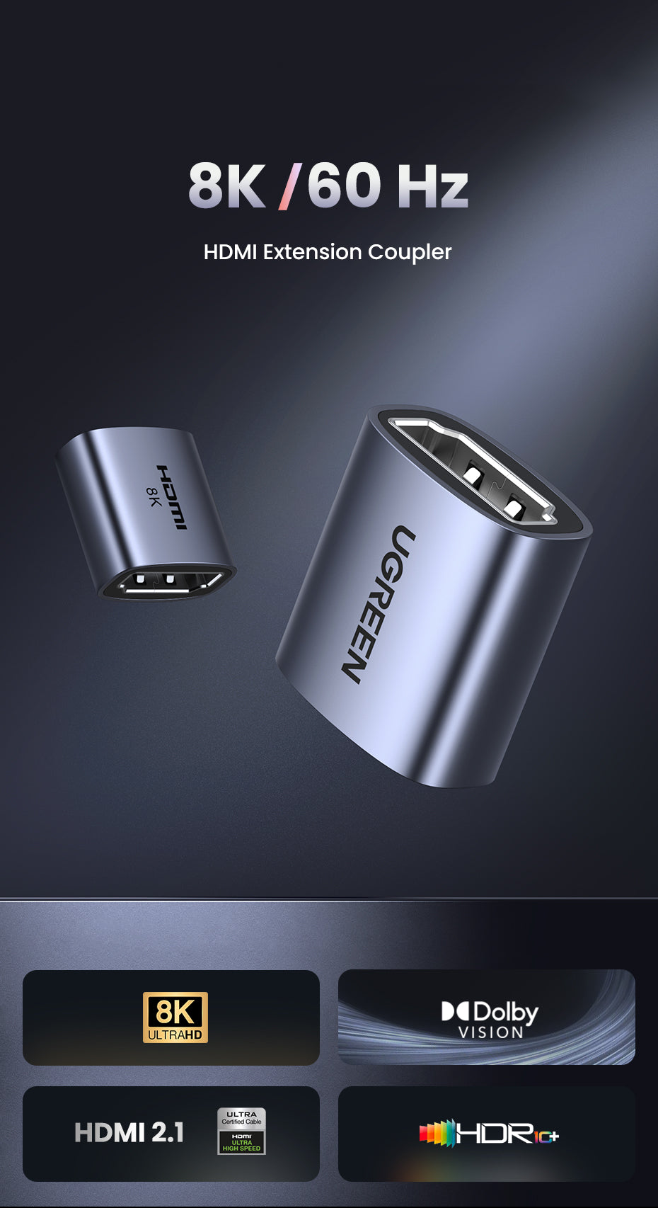 UGREEN HDMI Coupler 8K HDMI Adapter Female to Female HDMI Connector Support 3D 8K 4K 1080P HDMI Extender HDMI Extension for HDTV Roku TV stick Chromecast, Nintendo Switch Xbox One PlayStation 4 PS 3, Laptop PC