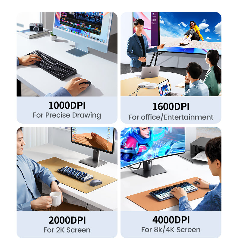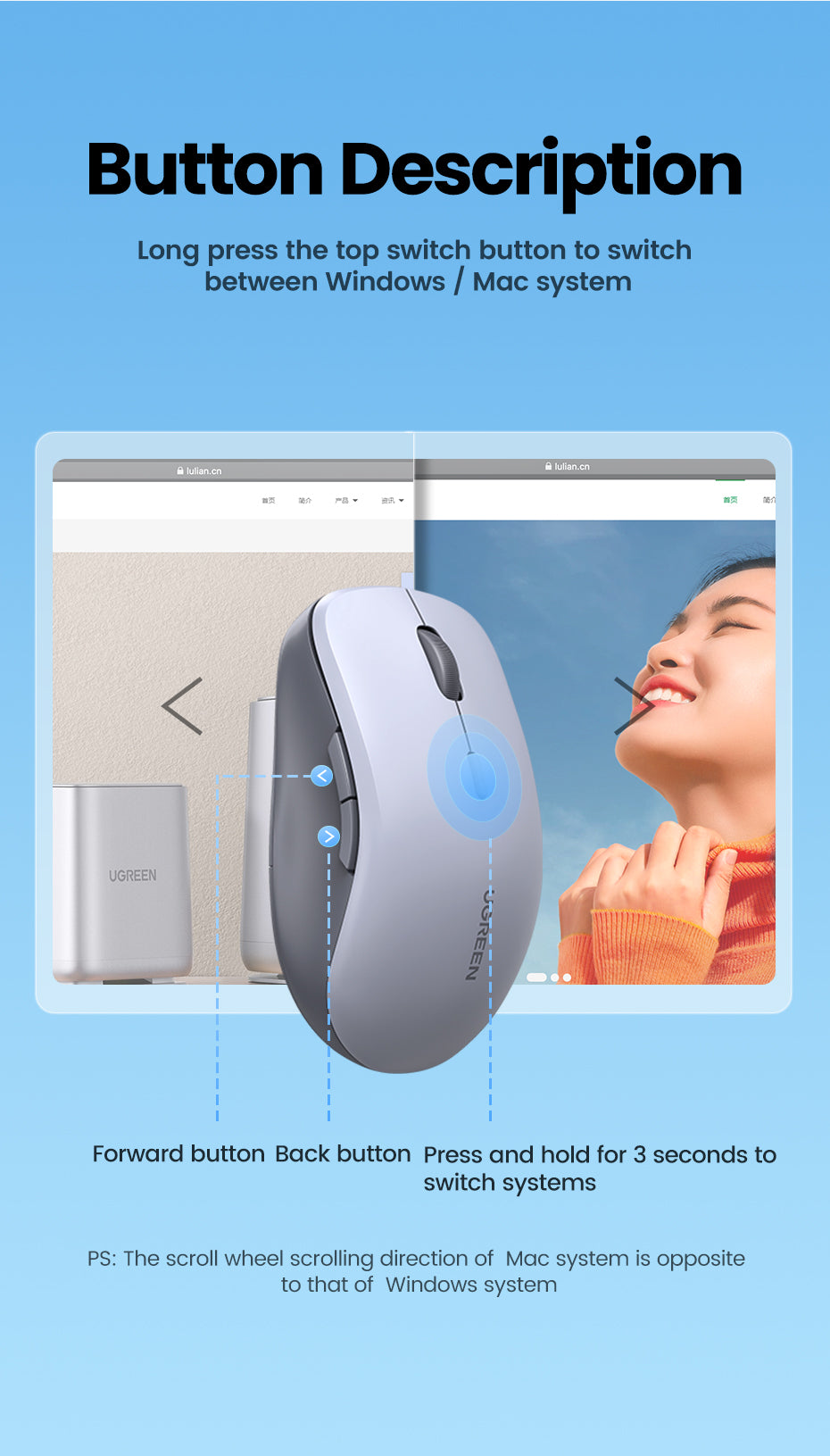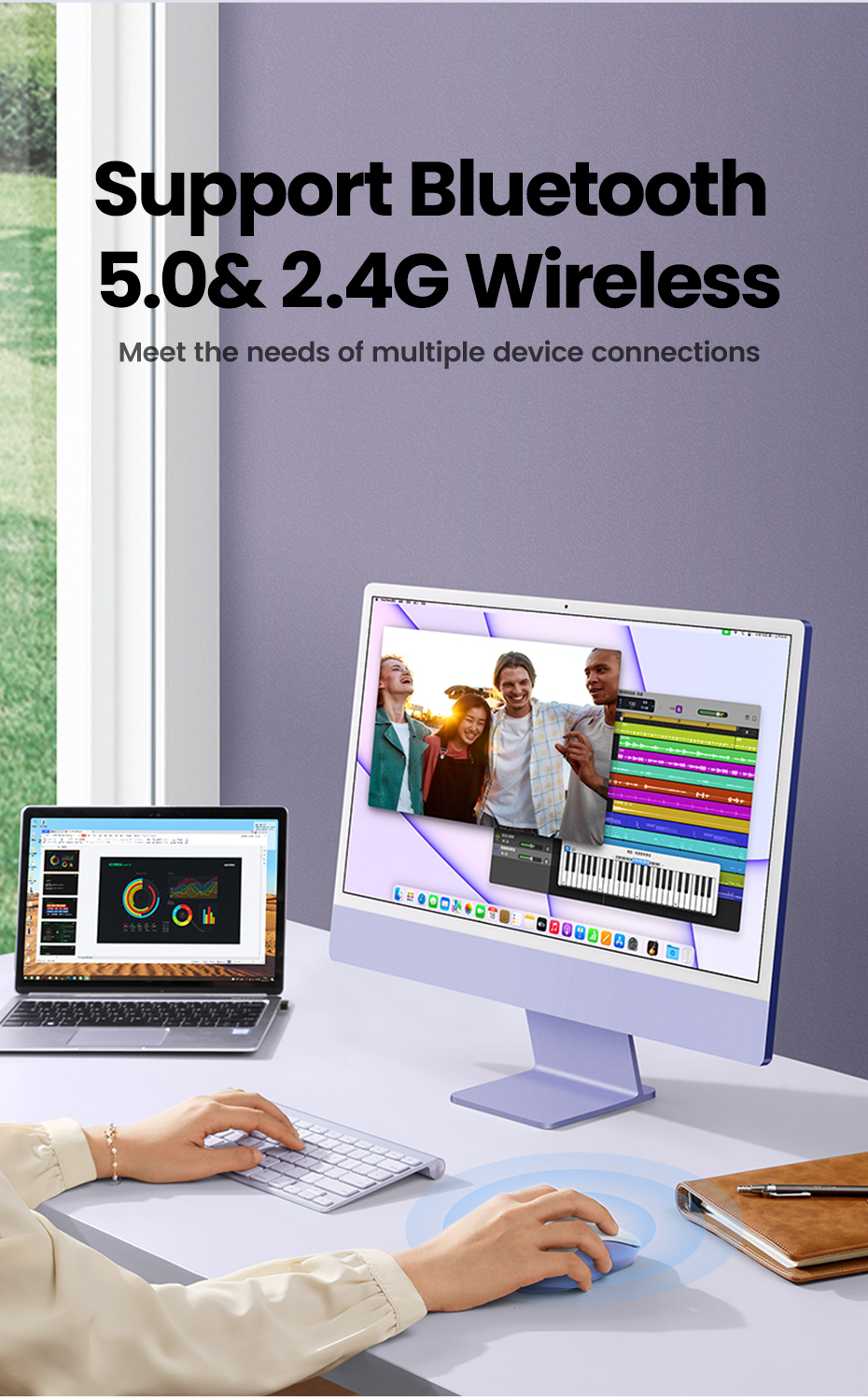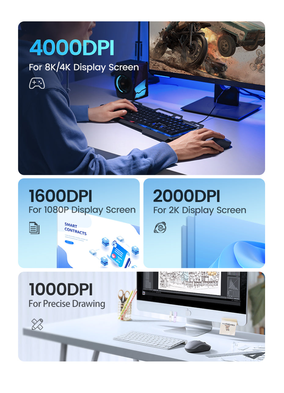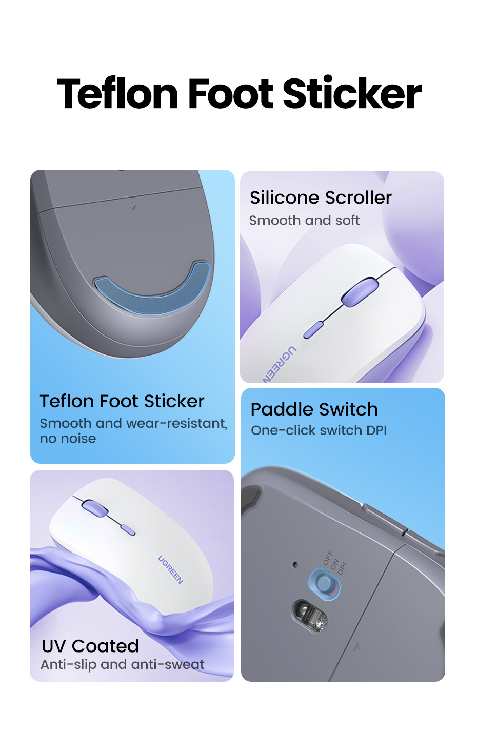 UGREEN Wireless Mouse Bluetooth & 2.4GHz Mice Ergonomic 4000DPI 6 Mute Buttons for Laptop Computer Desktop WIndows Mac OS Mouse